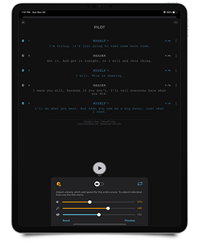 ...When I’m just beginning to learn lines I like to be by myself so this app provides an easy way for me to be my own reader...